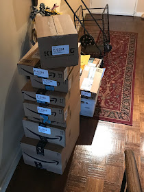 Peter and I opened every one of these packages tonight, sorted the donated items and then went to recycle all the boxes in our complex. It was a busy, busy re-entry to DC!