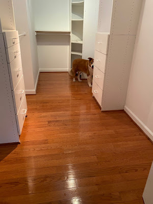 This afternoon, we had a terrible rain and thunder storm. That sends Sunny right into my parent's closet. Apparently Sunny deems this as the safest or most quiet place in the house.